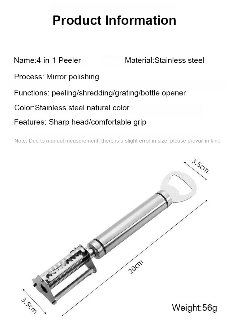 All-purpose 4-in-1 multifunctional stainless steel peeling knife